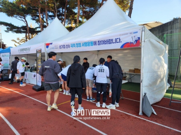 대회 시작 전부터, 골인 지점으로 들어온 뒤 뒷정리를 하던 참가자들은 모두 서명에 나섰다. 한 연인 참가자는 "손기정이 왜 일본인이야?", "손기정 이름이 일본명으로 새겨졌다고? 미친 거 아니야"라는 말을 주고 받는 모습이었다.