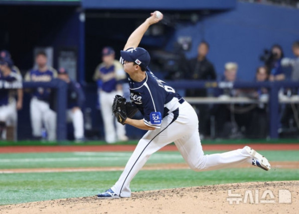 [서울=뉴시스] 조성우 기자 = 9일 오후 서울 구로구 고척스카이돔에서 열린 2025 K-베이스볼 시리즈 대한민국과 체코의 평가전 2차전 경기, 체코 5회말 공격 때 등판한 한국 투수 김서현이 역투하고 있다. 2025.11.09. [email protected]