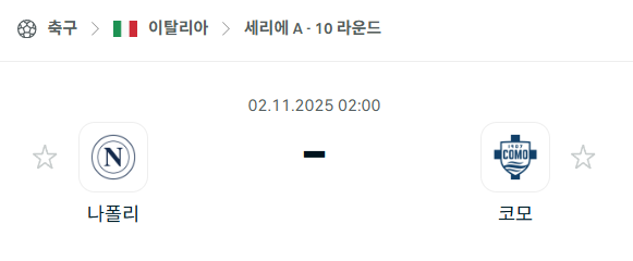 2025년 11월 02일에 열리는 세리에A 나폴리와 코모 1907 경기 분석입니다. 이번 경기는