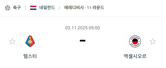 2025년 11월 02일에 열리는 에레디비시 텔스타와 엑셀시오르 경기 분석입니다. 이번 경기는