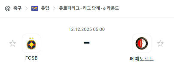 [UEFA 유로파리그] 2025년12월12일 FCSB vs 페예노르트 분석 중계