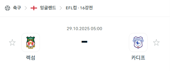 [EFL 카라바오컵] 2025년10월29일 렉섬 vs 카디프 분석 중계