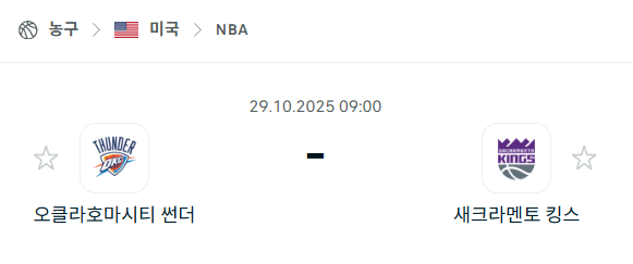 [미국 NBA] 2025년10월29일 오클라호마시티 썬더 vs 새크라멘토 킹스 분석 중계