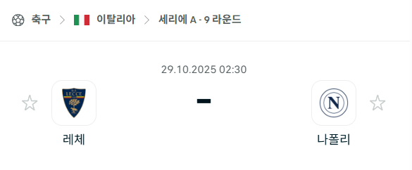 [이탈리아 세리에A] 2025년10월29일 레체 vs 나폴리 분석 중계