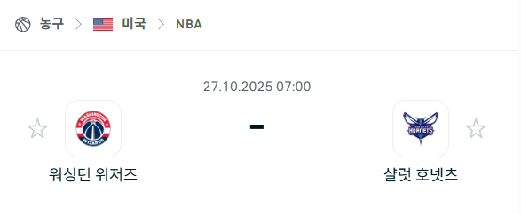 [미국 NBA] 2025년10월27일 워싱턴 위저즈 vs 샬럿 호네츠 분석 중계