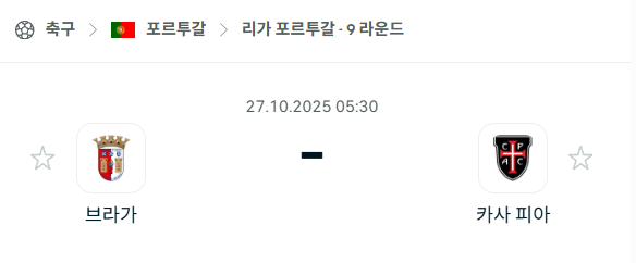 2025년 10월 27일에 열리는 포르투갈 프리메이라리가의 브라가와 카사 피아 경기 분석입니다. 이번 경기는