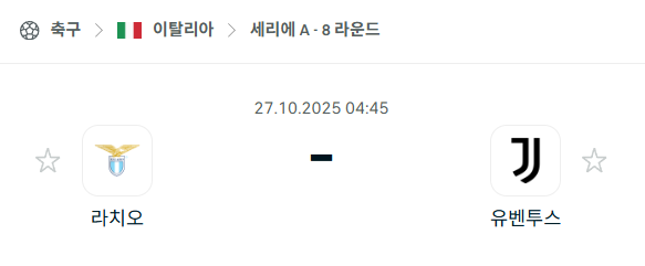 [이탈리아 세리에A] 2025년10월27일 라치오 vs 유벤투스 분석 중계