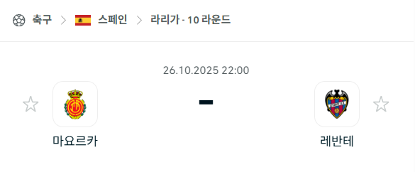 [스페인 라리가] 2025년10월26일 마요르카 vs 레반테 분석 중계