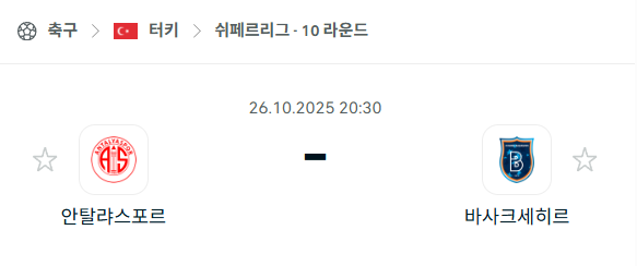 [터키 쉬페르리그] 2025년10월26일 안탈리아스포르 vs 바샥셰히르 분석 중계