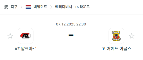 [네덜란드 에레디비시] 2025년12월07일 알크마르 vs 고어헤드이글스 분석 중계