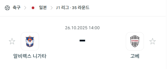 2025년 10월 26일에 열리는 J리그 1 알비렉스니가타와 비셀고베의 경기 분석입니다. 이번 경기는