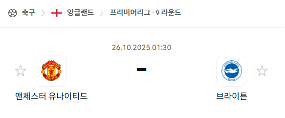올드 트래퍼드에서 열리는 리그 10라운드 경기로, 최근 상승세를 타고 있는 맨체스터 유나이티드가 홈에서 3연승을 노리는 가운데, 원정에서 강한 브라이튼이 이를 저지하려는 맞대결