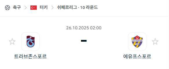 [터키 쉬페르리그] 2025년10월26일 트라브존스포르 vs 에유프스포르 분석 중계