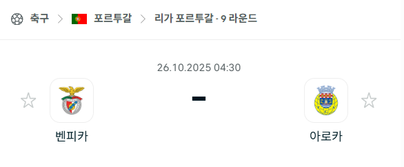[포르투갈 프리메이라리가] 2025년10월26일 벤피카 vs 아루카 분석 중계