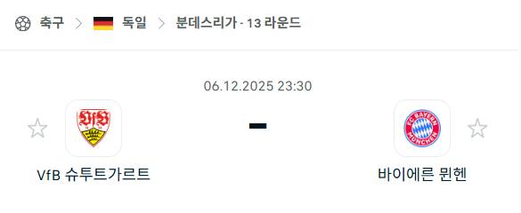 [독일 분데스리가] 2025년12월06일 슈투트가르트 vs 바이에른 뮌헨 분석 중계