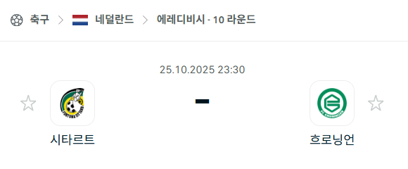 [네덜란드 에레디비시] 2025년10월25일 시타르트 vs 흐로닝언 분석 중계