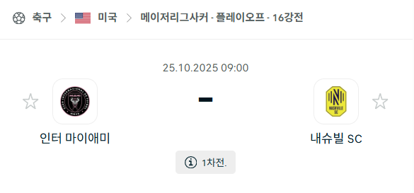 2025년 10월 25일에 열리는 메이저리그사커(MLS) 인터 마이애미와 내슈빌 경기 분석입니다. 이번 경기는 MLS 플레이오프의 시작을 알리는 중요한 경기로,
