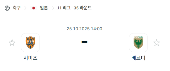2025년 10월 25일에 열리는 J리그 1 시미즈에스펄스와 도쿄베르디 경기 분석입니다. 이번 경기는