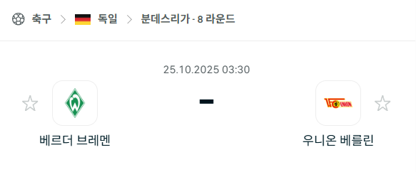 [독일 분데스리가] 2025년10월25일 베르더 브레멘 vs 우니온 베를린 분석 중계