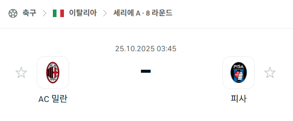 [이탈리아 세리에A] 2025년10월25일 AC 밀란 vs 피사 분석 중계