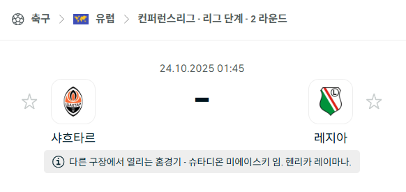 [UEFA 컨퍼런스리그] 2025년10월24일 샤흐타르 vs 레기아 분석 중계