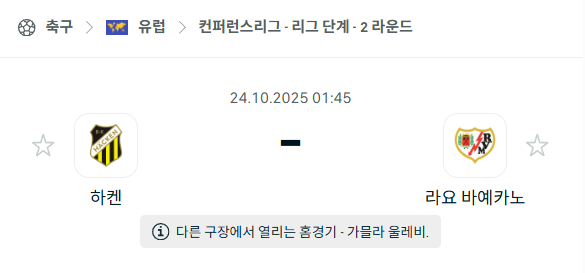 [UEFA 컨퍼런스리그] 2025년10월24일 하켄 vs 라요 바예카노 분석 중계