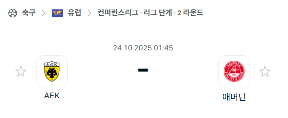 [UEFA 컨퍼런스리그] 2025년10월24일 AEK vs 애버딘 분석 중계