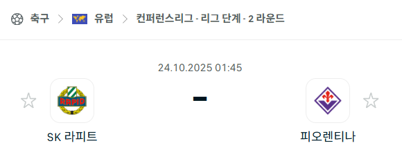 [UEFA 컨퍼런스리그] 2025년10월24일 라피드 빈 vs 피오렌티나 분석 중계