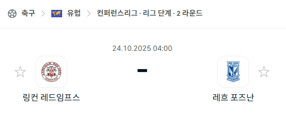 [UEFA 컨퍼런스리그] 2025년10월24일 링컨 레드임프스 vs 레흐 포즈난 분석 중계