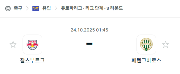 [UEFA 유로파리그] 2025년10월24일 잘츠부르크 vs 페렌츠바로시 분석 중계