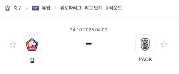 [UEFA 유로파리그] 2025년10월24일 릴 vs PAOK 분석 중계