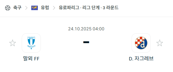 [UEFA 유로파리그] 2025년10월24일 말뫼 vs 디나모 자그레브 분석 중계