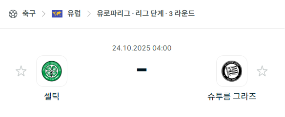 2025년 10월 24일에 열리는 UEFA 유로파리그의 셀틱과 슈투름 그라츠 경기 분석입니다. 이번 경기는 스코틀랜드 글래스고의 셀틱 파크에서 열리며,