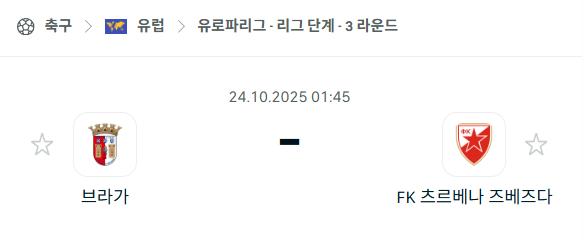 [UEFA 유로파리그] 2025년10월24일 브라가 vs 츠르베나 즈베즈다 분석 중계