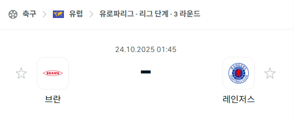 [UEFA 유로파리그] 2025년10월24일 브란 vs 레인저스 분석 중계
