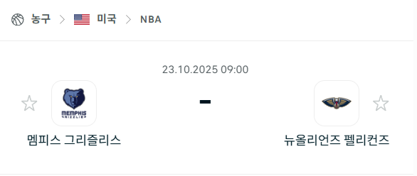 [미국 NBA] 2025년10월23일 멤피스 그리즐리스 vs 뉴올리언즈 펠리컨스 분석 중계
