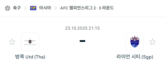 [AFC 아시아챔피언스리그2] 2025년10월23일 방콕 유나이티드 vs 라이언 시티 분석 중계