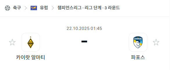 [UEFA 챔피언스리그] 2025년10월22일 카이랏 알마티 vs 파포스 분석 중계