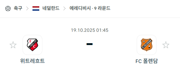 [네덜란드 에레디비시] 2025년10월19일 위트레흐트 vs 폴렌담 분석 중계