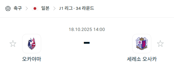 [일본 J리그1] 2025년10월18일 파지아노 오카야마 vs 세레소 오사카 분석 중계