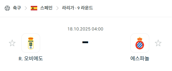 [스페인 라리가] 2025년10월18일 레알 오비에도 vs 에스파뇰 분석 중계