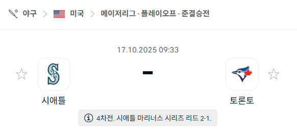[MLB 메이저리그] 2025년10월17일 시애틀 매리너스 vs 토론토 블루제이스 분석 중계