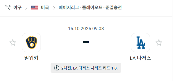 [MLB 메이저리그] 2025년10월15일 밀워키 브루어스 vs LA 다저스 분석 중계