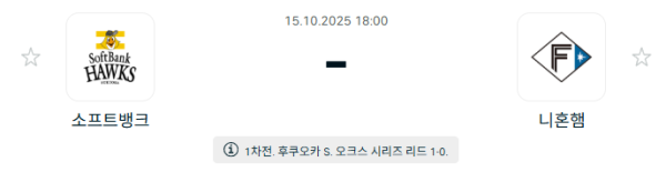 [NPB 일본야구] 2025년10월15일 소프트뱅크 호크스 vs 닛폰햄 파이터스 분석 중계