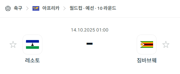 [아프리카 월드컵예선] 2025년10월13일 레소토 vs 짐바브웨 분석 중계