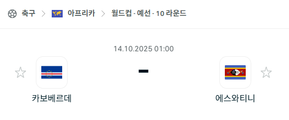 [아프리카 월드컵예선] 2025년10월13일 카보베르데 vs 에스와티니 분석 중계