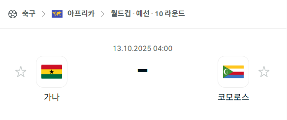 [아프리카 월드컵예선] 2025년10월12일 가나 vs 코모로스 분석 중계