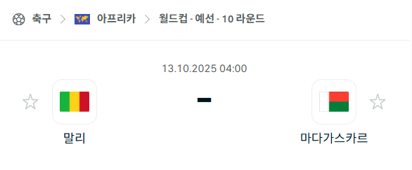 [아프리카 월드컵예선] 2025년10월13일 말리 vs 마다가스카르 분석 중계