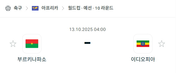 [아프리카 월드컵예선] 2025년10월13일 부르키나파소 vs 에티오피아 분석 중계