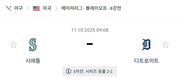 [MLB 메이저리그] 2025년10월11일 시애틀 매리너스 vs 디트로이트 타이거즈 분석 중계